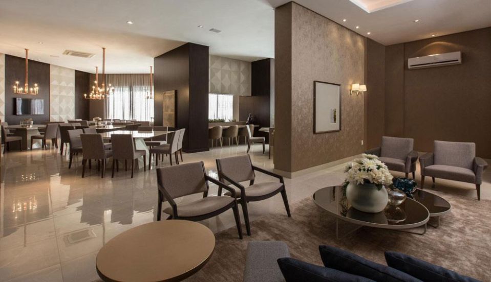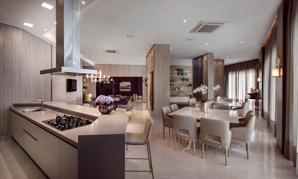 - Living integrado com sala de estar e jantar